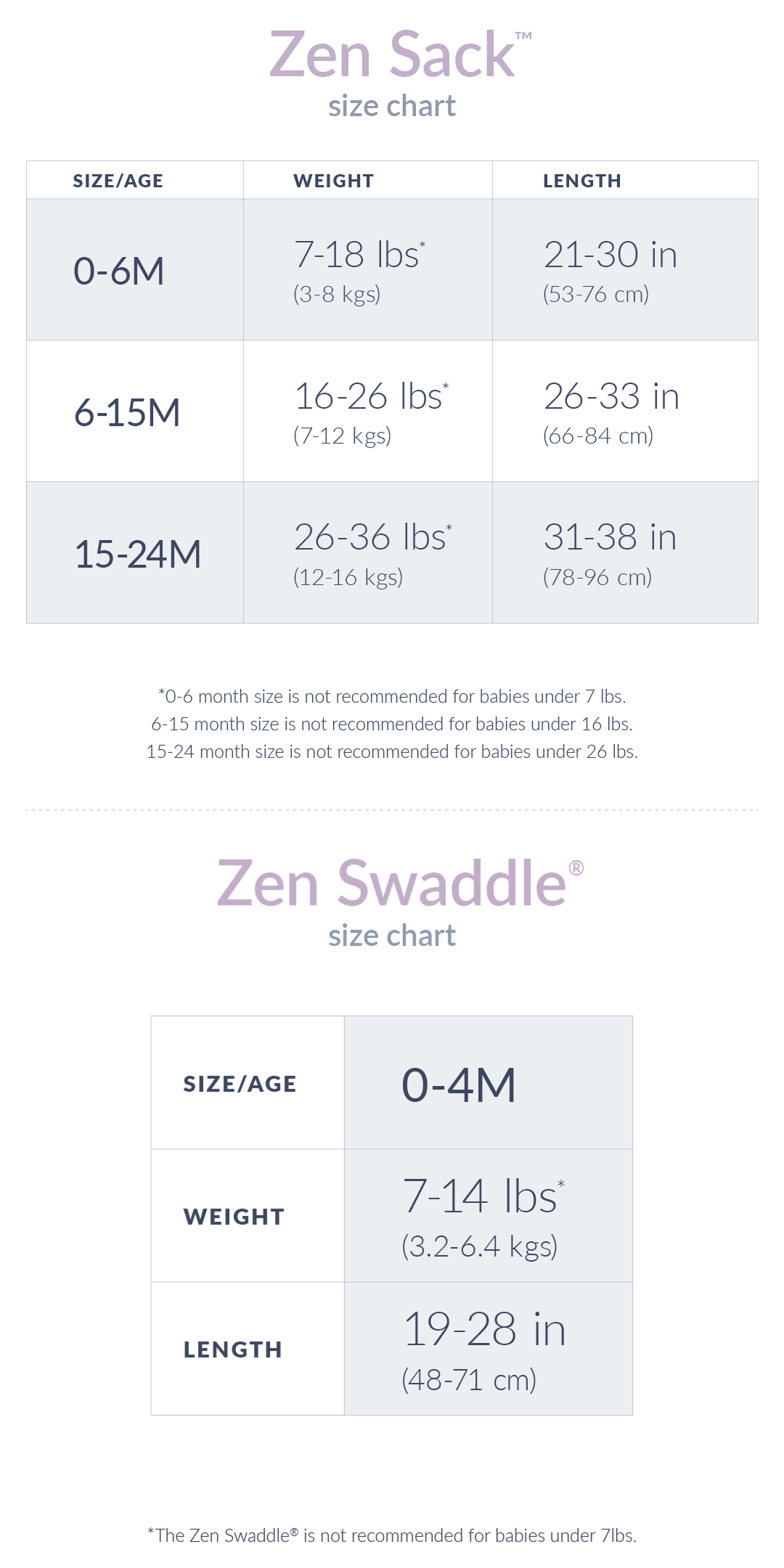 All Zen sleep sacks feature a built-in Cuddle Pad™, which weighs just 30 grams (Small size) 60 grams (Medium size) and 90 grams (Large size and distributed across the chest). Our baby sleep sacks are safely weighted in key areas as opposed to all-weighted sleep sacks or weighted blankets, which the AAP has deemed unsafe for infants.